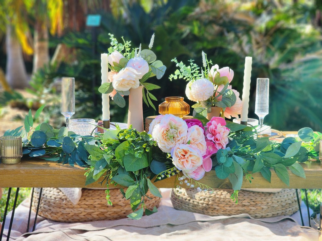 Our set-ups includes everything you’d need for an upscale, curated picnic. Rugs, plush pillows, and gorgeous tablescapes will complete the picture perfect atmosphere.